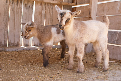 Annie Oakley’s first freshening Posted by Laura on May 4, 2012 in Goats, On the farm And one short month later… Annie Oakley gave us her first set of twins, both boys! The white and tan one is “Harley” and has been sponsored to stay with our herd. His gorgeous outlaw brother is “Buffalo Bill”.